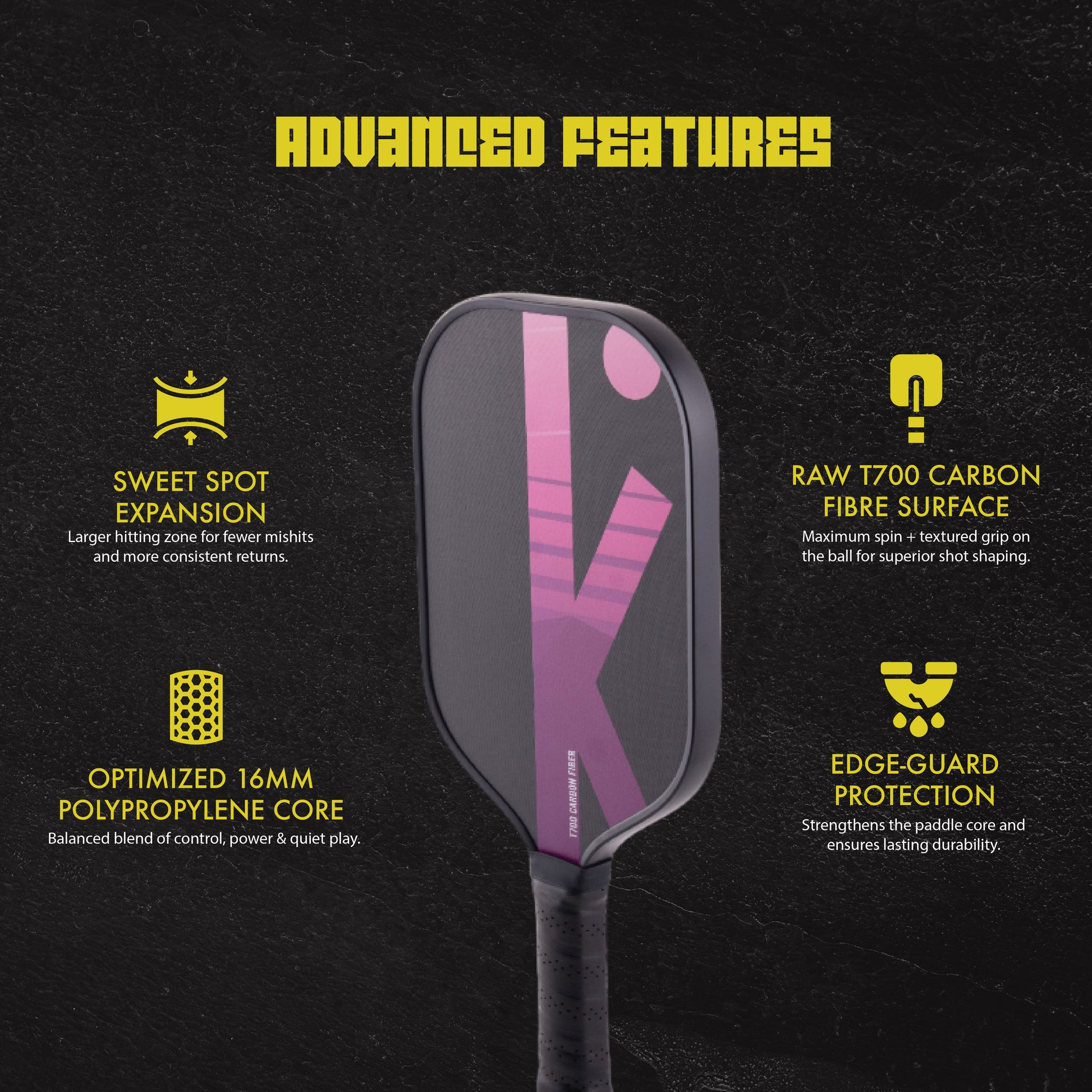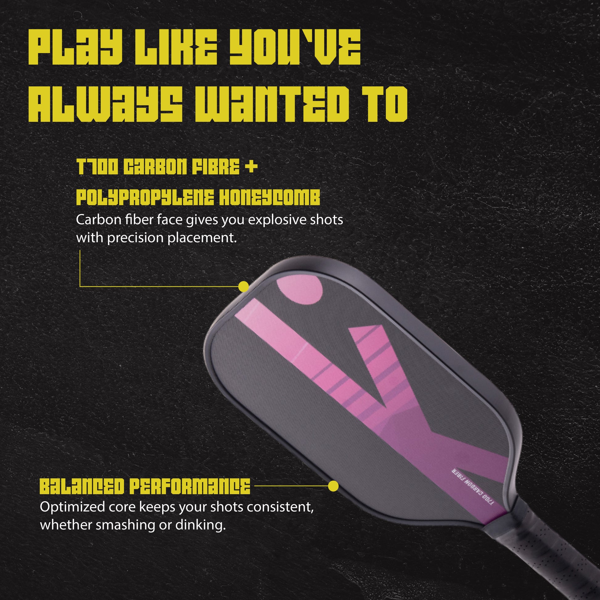 Built for players who demand strength, precision, and lightweight performance, the T700 carbon fiber pickleball paddle is ideal for Chennai’s growing pickleball scene. Whether you're hitting powerful smashes or executing soft touch shots, this paddle offers the control you need to elevate your play.